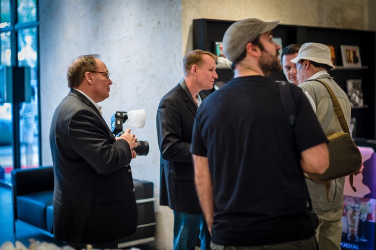James Wagner, Leica National Sales Manager, is taking photographs with the Leica S2 as Tom A. Smith, Leica Akademie, looks on.